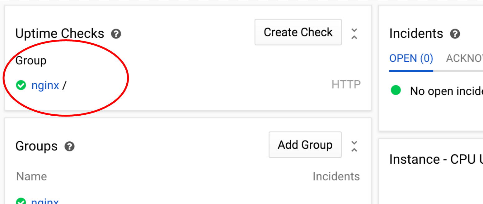 จากนั้นไปที่คอนโซล Google Stackdriver ("การตรวจสอบ" จากเมนูด้านซ้ายของ Cloud Console) แล้วนำการตรวจสอบช่วงเวลาที่ระบบพร้อมใช้งานและนโยบายการแจ้งเตือนที่เราสร้างไว้แล้วออก คุณทำได้จากรายการเมนูระดับบนสุด การแจ้งเตือน -> ภาพรวมนโยบาย และการแจ้งเตือน -> การตรวจสอบระยะเวลาทำงาน