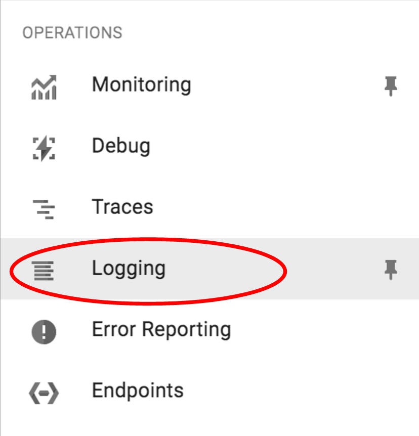 หากต้องการเข้าถึงโปรแกรมดูบันทึกของ Cloud ให้เลือกจากเมนูด้านซ้ายของ Cloud Console