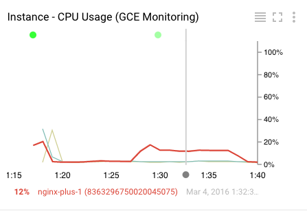 ก่อนที่เราจะพิจารณาแผนภูมิ คุณจะเห็นว่าเส้นส่วนใหญ่แบนราบหลังจากเริ่มต้นอินสแตนซ์ครั้งแรก มาดูกันว่าเราจะ "ยกเลิกการแบน" บางรายการได้ไหมโดยการสร้างภาระงานในอินสแตนซ์ใดอินสแตนซ์หนึ่ง