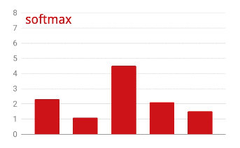 ベクトルに softmax を適用するには、各要素の指数関数を取り、ベクトルを正規化します。通常は、正規化された値の合計が 1 になり、確率として解釈できるように、L1 ノルム(絶対値の合計)で除算します。