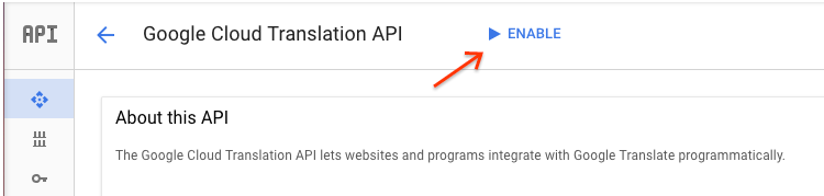 এপিআই নিষ্ক্রিয় থাকলে, ক্লাউড ট্রান্সলেশন এপিআই সক্ষম করতে সক্ষম করুন ক্লিক করুন: