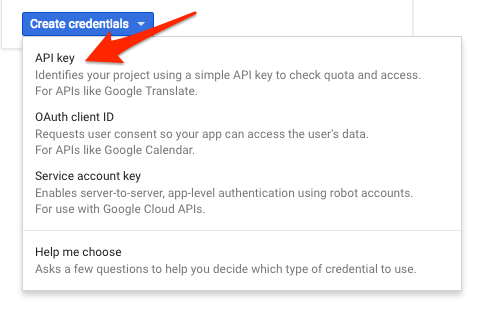 בתפריט הנפתח, בוחרים באפשרות API key: