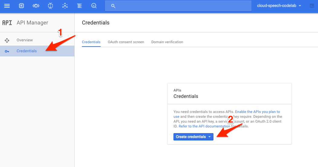 curl を使用して Translation API にリクエストを送信するため、リクエスト URL で渡す API キーを生成する必要があります。API キーを作成するには、プロジェクト ダッシュボードの API Manager セクションに移動します。