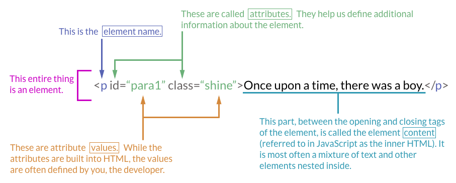 - Elementos: itens (como imagens, parágrafos e cabeçalhos) criados com código HTML.