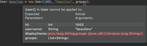 Leider wurde dieser Fehler durch einen neuen Fehler ersetzt, der sich auf die Parameter bezieht, die an den Konstruktor für User