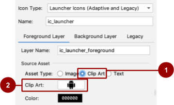 - في حقل نوع الرمز، اختَر رموز مشغّل التطبيقات (متكيّفة وقديمة) إذا لم يكن هذا الخيار محدّدًا من قبل. انقر على علامة التبويب الطبقة الأمامية.