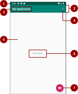 1 | Строка состояния, которую предоставляет и контролирует система Android. | Не отображается в коде шаблона, но вы можете получить доступ к строке состояния из вашей активности. Например, при необходимости вы можете добавить код в |