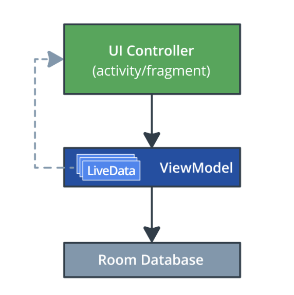 このアプリは、UI コントローラ、ビューモデル、LiveData