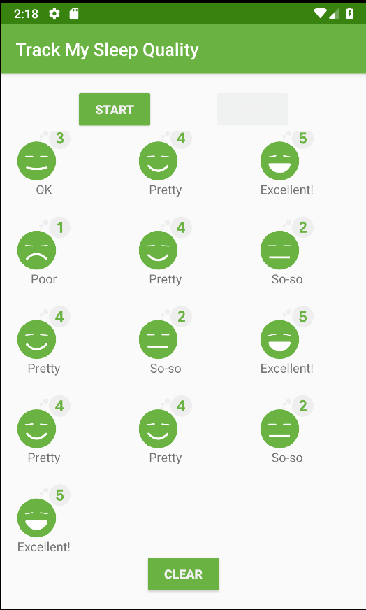 In diesem Codelab fügen Sie Ihrem RecyclerView Interaktion hinzu. Dabei bauen Sie auf einer erweiterten Version der Sleep-Tracker-App aus der vorherigen Codelab-Reihe auf.
