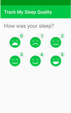 Solda gösterilen ilk ekranda izlemeyi başlatma ve durdurma düğmeleri bulunur. Ekranda kullanıcının uyku verilerinden bazıları gösterilir. Temizle düğmesi, uygulamanın kullanıcı için topladığı tüm verileri kalıcı olarak siler. Sağda gösterilen ikinci ekranda uyku kalitesi derecesi seçilir.