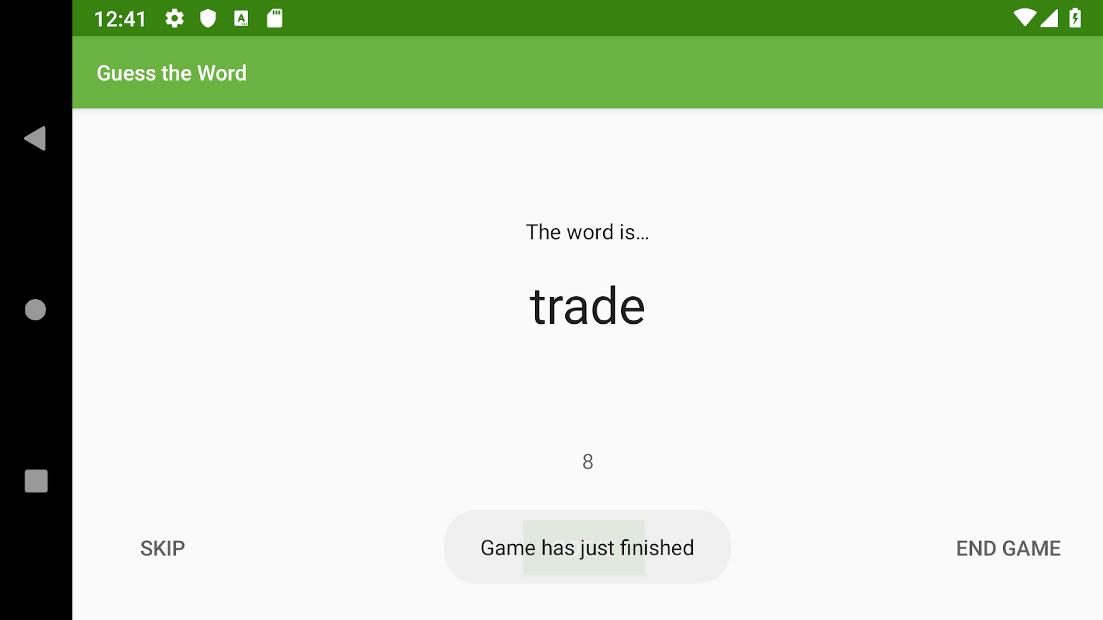 - توجه داشته باشید که دکمه Skip کلمه بعدی را نمایش می دهد و امتیاز را یک بار کاهش می دهد و دکمه Got It کلمه بعدی را نشان می دهد و امتیاز را یک افزایش می دهد. دکمه پایان بازی بازی را به پایان می رساند.