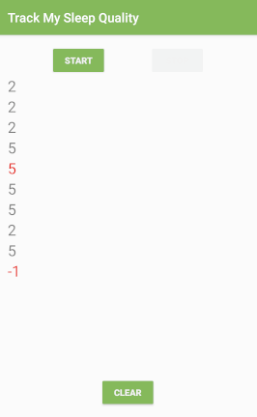 Màn hình đầu tiên (xuất hiện ở bên trái) có các nút để bắt đầu và dừng theo dõi. Màn hình này cũng cho thấy tất cả dữ liệu về giấc ngủ của người dùng. Nút Xoá sẽ xoá vĩnh viễn tất cả dữ liệu mà ứng dụng đã thu thập cho người dùng. Màn hình thứ hai (ở bên phải) là màn hình chọn mức đánh giá chất lượng giấc ngủ.
