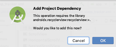- Nếu một hộp thoại mở ra hỏi xem bạn có muốn thêm một phần phụ thuộc hay không, hãy nhấp vào OK để cho phép Android Studio thêm phần phụ thuộc