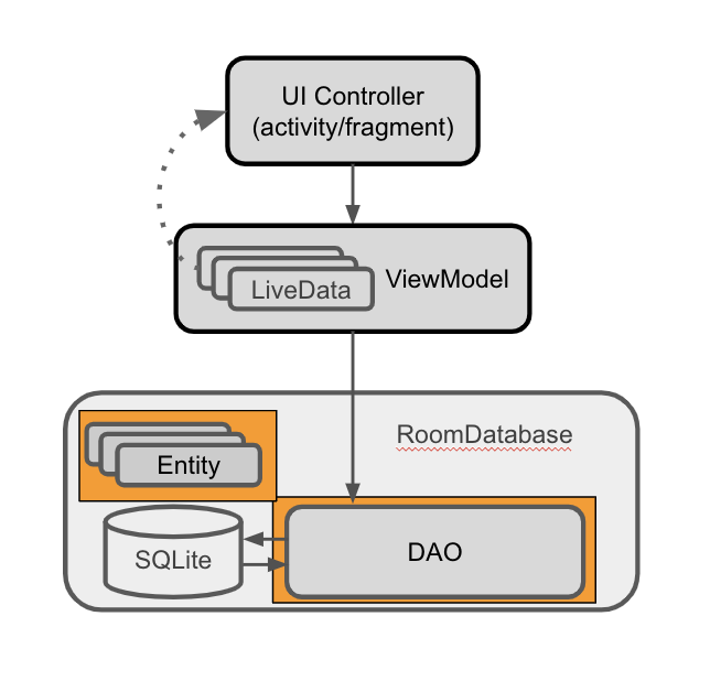 É necessário definir cada entidade como uma classe de dados anotada e as interações como uma interface anotada, um objeto de acesso a dados (DAO). O Room usa essas classes anotadas para criar tabelas no banco de dados e consultas que atuam nele.