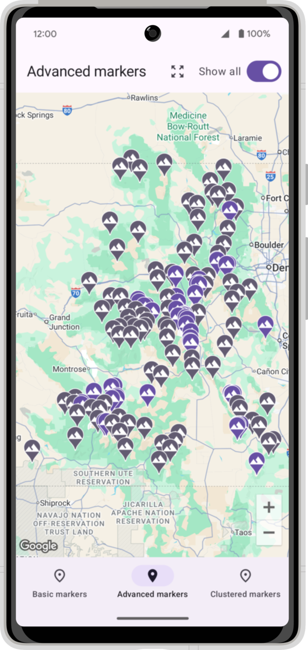 Cet atelier de programmation vous explique comment intégrer le SDK Maps pour Android à votre application et utiliser ses principales fonctionnalités. Pour cela, nous allons créer une application affichant une carte des montagnes du Colorado, aux États-Unis, à l'aide de différents types de repères. Vous apprendrez également à dessiner d'autres formes sur la carte.