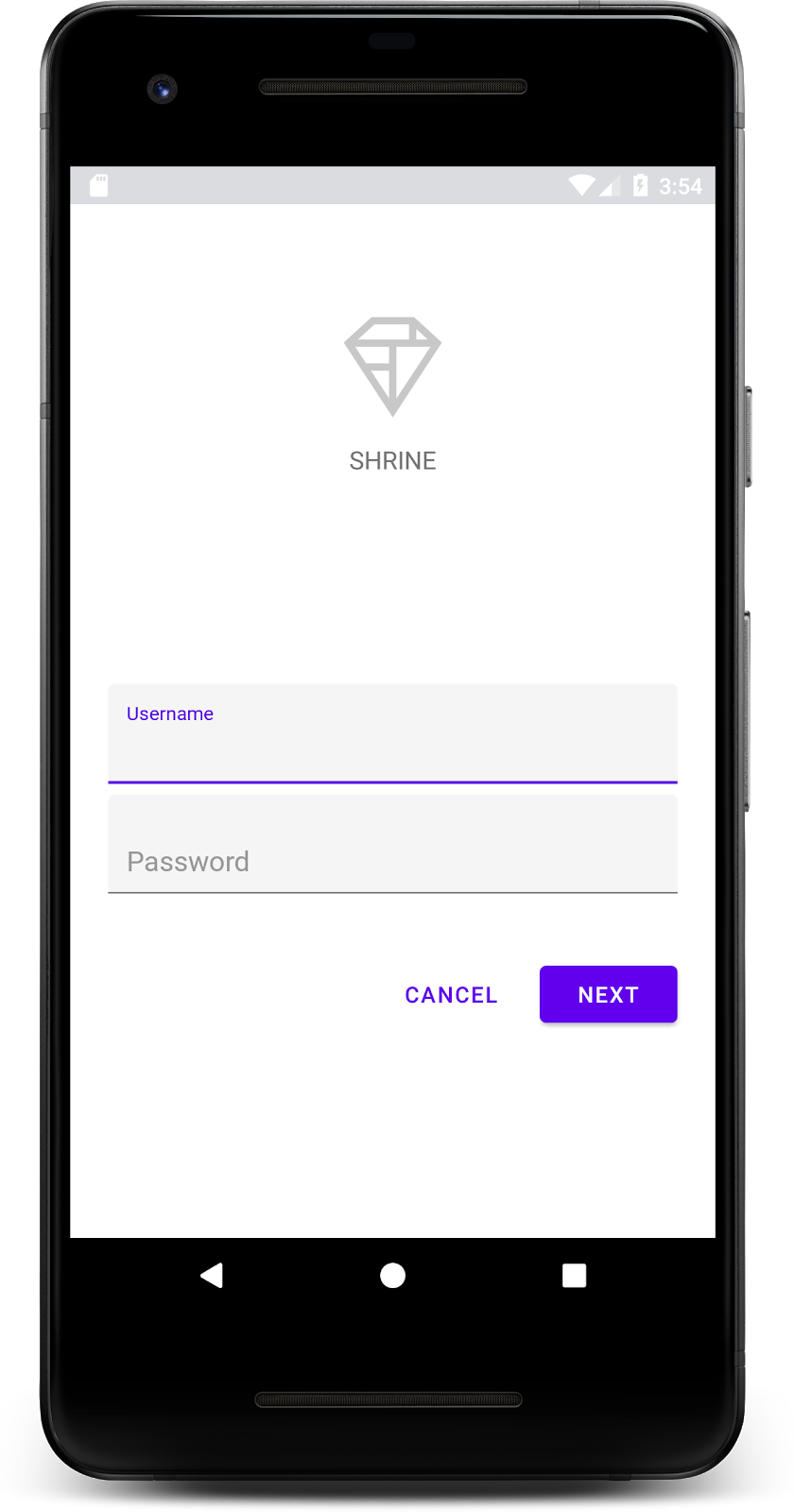 Usando marcação XML básica e cerca de 30 linhas de Kotlin, a biblioteca de componentes do Material Design para Android ajudou você a criar uma página de login bonita que segue as diretrizes do Material Design e também tem aparência e comportamento consistentes em todos os dispositivos.