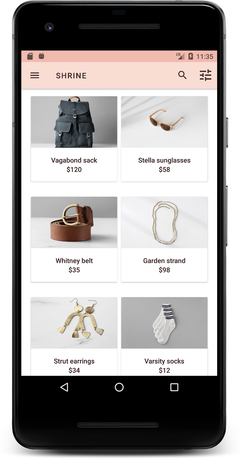 La recente espansione di Material Design offre a designer e sviluppatori una maggiore flessibilità per esprimere il brand del proprio prodotto. Ora puoi utilizzare MDC per personalizzare Shrine e riflettere il suo stile unico.