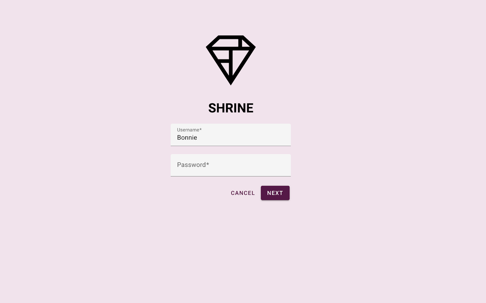 Codelab MDC-101 および MDC-102 では、マテリアル コンポーネント(MDC)を使用して、Shrine というアプリの土台を構築しました。Shrine は、衣服と生活雑貨を販売する e コマースアプリです。このアプリのユーザーフローは、最初にログイン画面を表示し、次に商品を表示するホーム画面に移動します。
