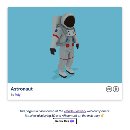 srcspecifica da dove caricare il modello 3D. In questo esempio è stato utilizzato un modello Astronauta di Poly, reso disponibile con licenza CC-BY. - L'attributo