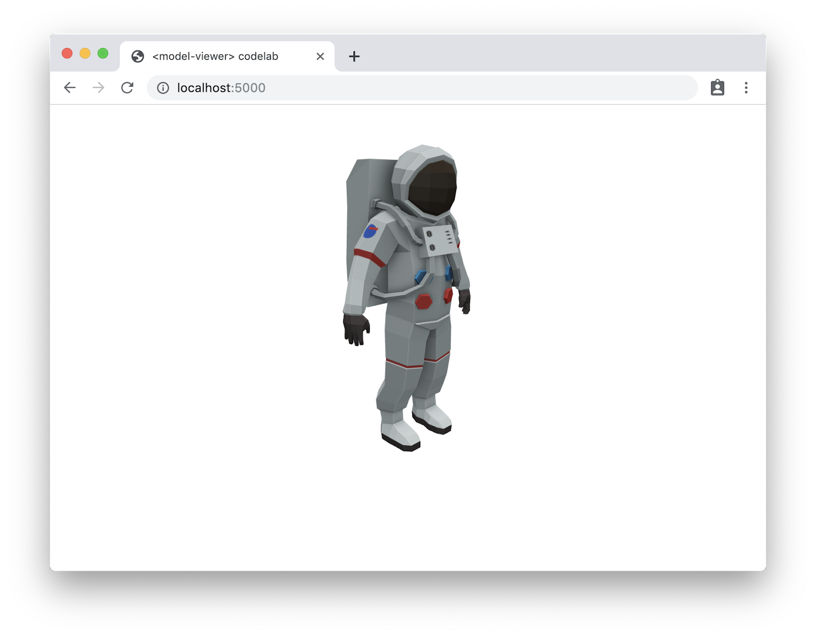 </model-viewer>Sayfayı yenilediğinizde astronot yavaşça dönmeye başlar. Modeli sürüklemeyi denerseniz (fareyi tıklayıp hareket ettirerek veya dokunma özellikli bir cihazda parmağınızı sürükleyerek) model döner.