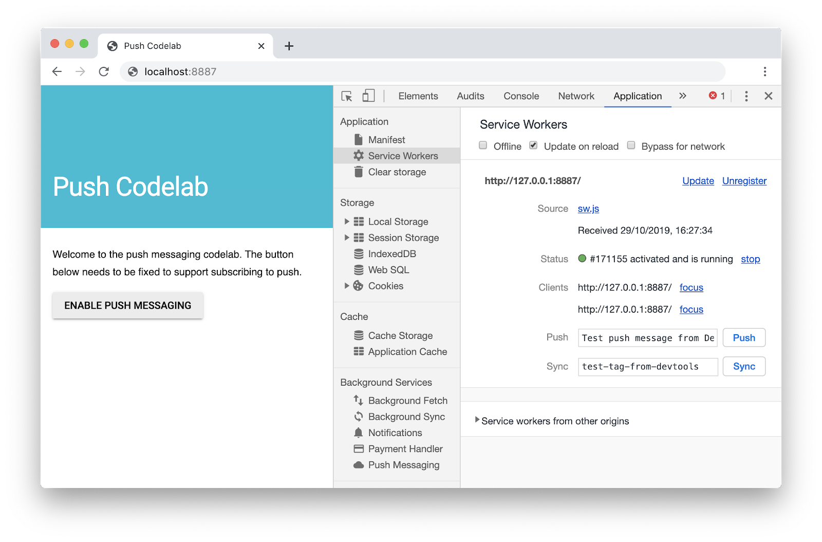 ブラウザの [Push Codelab] タブを更新して、変更を確認します。