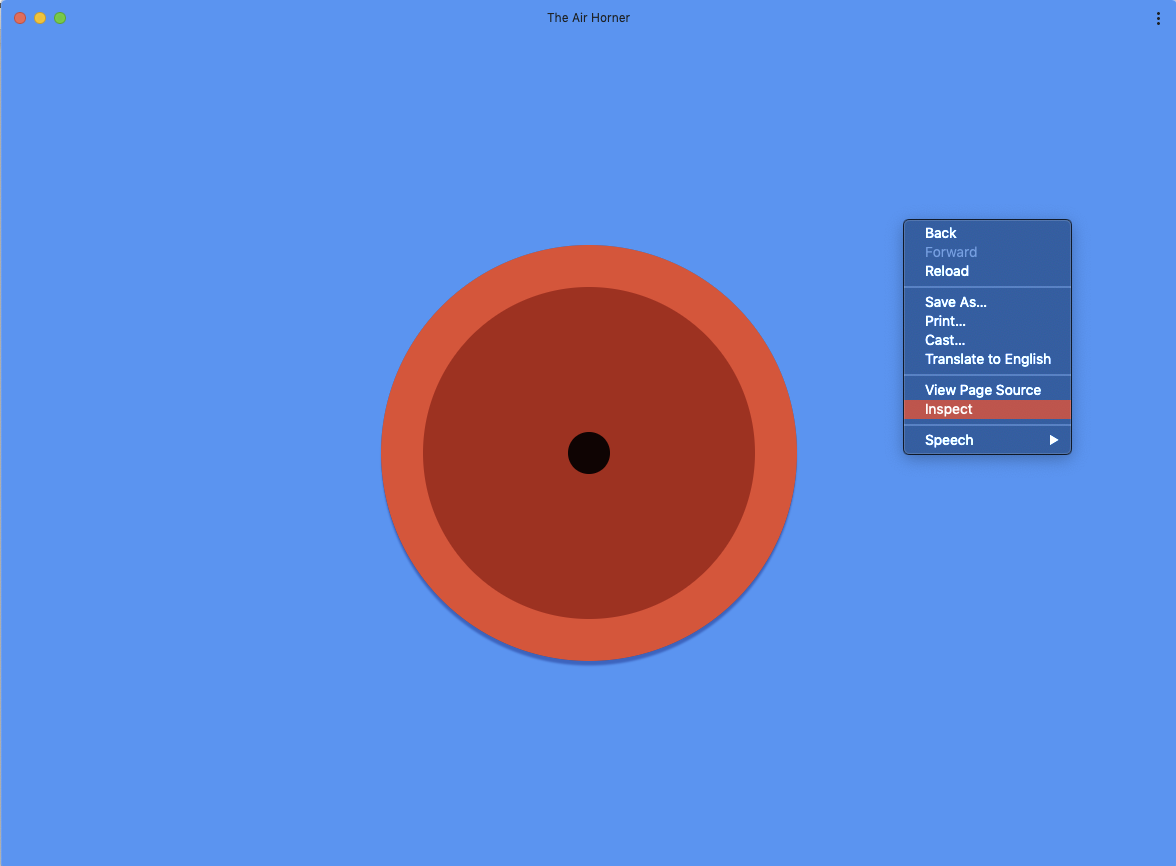 এই API কাজ করার জন্য, আপনার একটি PWA প্রয়োজন যা হোম স্ক্রিনে ইনস্টল করা আছে, তাই প্রথম ধাপ হল একটি PWA ইনস্টল করা, যেমন কুখ্যাত, বিশ্ব-বিখ্যাত airhorner.com । উপরে-ডান কোণায় ইনস্টল বোতাম টিপুন বা ম্যানুয়ালি ইনস্টল করতে তিন-বিন্দু মেনু ব্যবহার করুন।