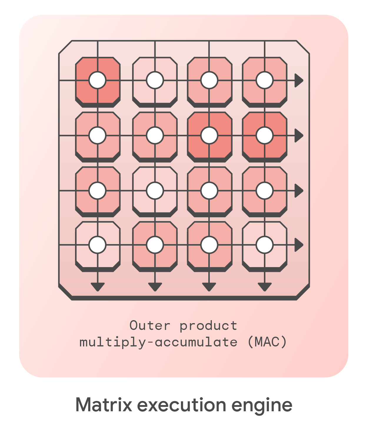 The central component of the Coral NPU architecture is a quantized outer-product multiply-accumulate (MAC) engine. An outer-product engine provides two-dimensional broadcast structures to maximize the amount of deliverable compute with respect to memory accesses.