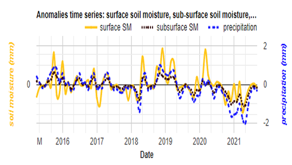 Soil moisture and precipitation analysis to identify prolonged drought.
