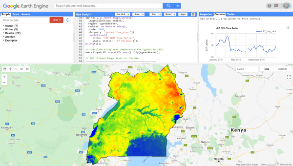 Created by Earth Engine users, for Earth Engine users, tutorials in this section are intended for all levels, from beginner guides to walk throughs of more advanced techniques.