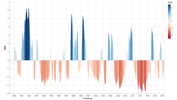 Generating time series data and visualizing it with the Altair library using drought and vegetation response.