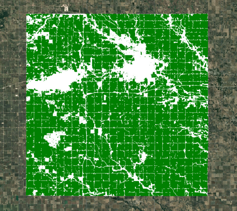Applichiamo la maschera delle colture al mosaico degli incorporamenti. Ora rimangono tutti i pixel che rappresentano i terreni coltivati della contea.