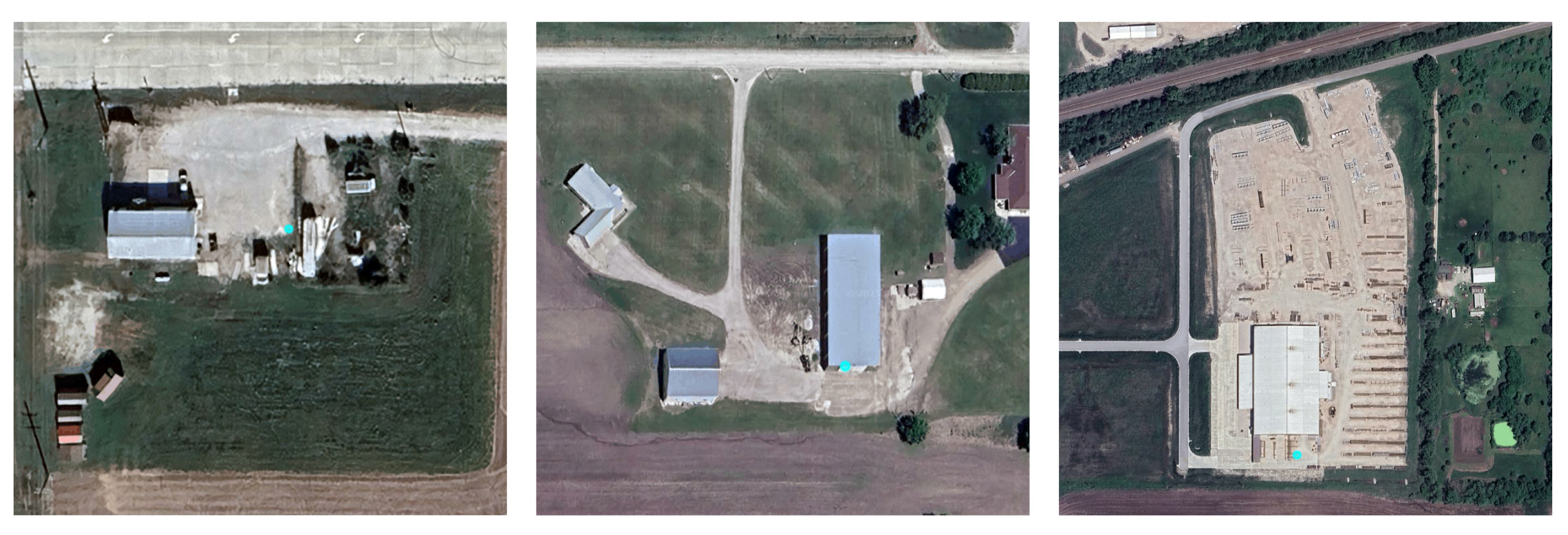 หากต้องการประเมินผลลัพธ์ คุณสามารถซูมเข้าที่การจับคู่ที่คาดการณ์แต่ละรายการเพื่อดูว่ามีไซโลเก็บเมล็ดพืชในสถานที่นั้นหรือไม่ คุณจะเห็นว่ามีผลการค้นหาจำนวนมากที่ระบุไซโลเก็บธัญพืชได้อย่างถูกต้อง