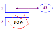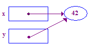 | 5. Cho y = x; sao cho y trỏ đến con trỏ của x. Bây giờ x và y trỏ đến cùng một người được chỉ định -- chúng "đang chia sẻ". | ![]() |