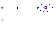 | 3. Tham chiếu x để lưu trữ 42 trong điểm tương tác. Đây là một ví dụ cơ bản của toán tử tham chiếu. Bắt đầu tại x, đi theo mũi tên qua để truy cập con trỏ. | ![]() |