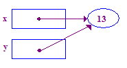 *y = 13; // Dereference y to store 13 in its (shared) pointee