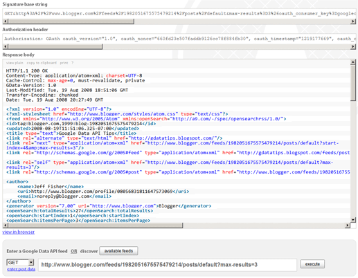 oauth_tokenللتفاعل مع خلاصة بيانات Google مصادَق عليها. يمكنك الاطّلاع على بياناتGET/POST/PUT/DELETE. - عرض خلاصة مصادَق عليها مباشرةً في المتصفح
