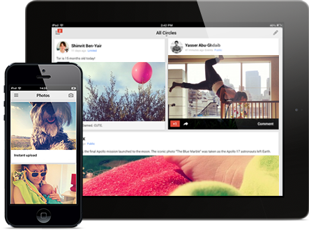 Figure 2: Google+ on phones and tablets shows a full stream of post with content inline.