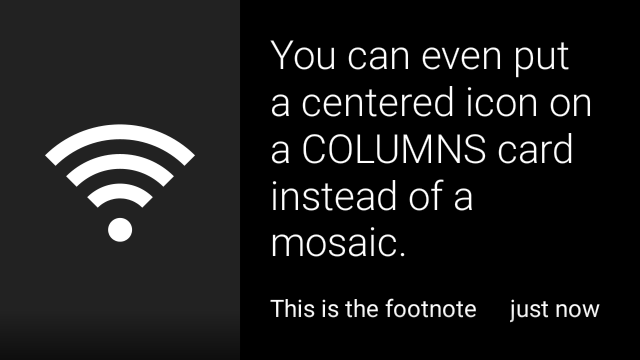 .setText("You can even put a centered icon on a COLUMNS card instead of a mosaic.")