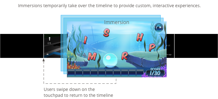 تُعد الانغماسات مناسبة للتجارب التي تتطلب اهتمامًا كبيرًا من المستخدم. وهي تتيح لك إنشاء واجهة مستخدم متخصصة تظهر خارج المخطط الزمني، بحيث يمكن للمستخدمين التعمق في تجربة مخصصة.