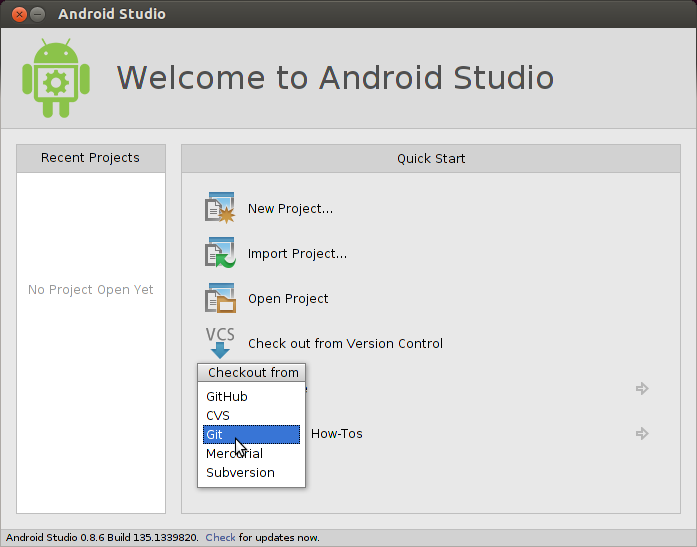 - Kliknij Sprawdź w sekcji Kontrola wersji > Git.
