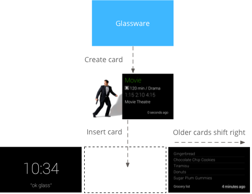 Glassware zaman çizelgesine statik kartlar eklediğinde Glass, kullanıcıları uyarmak için bildirim sesi çalabilir. Önceki tüm statik kartlar da sağa kayar ve 7 gün sonra veya 200 kart daha yeni olduğunda zaman çizelgesinden kaybolur.