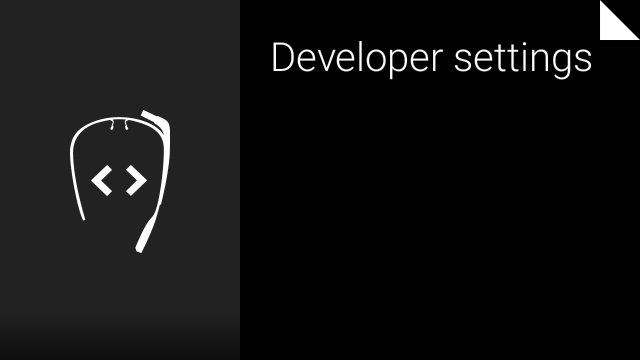 Jika Anda mengaktifkan debug dari kartu Info perangkat di menu setelan, kartu Setelan developer akan terlihat di samping kartu. Anda dapat mengakses setelan developer lanjutan berikut dari kartu ini.