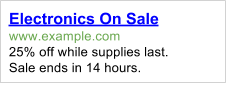 "Sale ends in 14 hours" conveys more urgency than just "Sale ends soon". Furthermore, if prospective customers view your ad again three hours later, they will see "Sale ends in 11 hours", convincing them that there is an actual countdown.