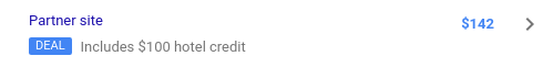 Google dopasowuje metadane do danych dotyczących konkretnego planu podróży, aby wyświetlać treści reklam. Istnieje specjalny proces łączenia nazw i opisów z elementów <RoomData> i <PackageData>, który umożliwia opisanie pokoju w <RoomData>, a funkcji cenowych i szczegółów pakietu w <PackageData>.