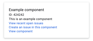 คอมโพเนนต์คือคอนเทนเนอร์สำหรับปัญหาในเครื่องมือติดตามปัญหาของ Google คอมโพเนนต์อาจสอดคล้องกับโปรเจ็กต์ โปรเจ็กต์ย่อย หรือกลุ่มปัญหาด้านฟังก์ชันการทำงานหรือองค์กรอื่นๆ