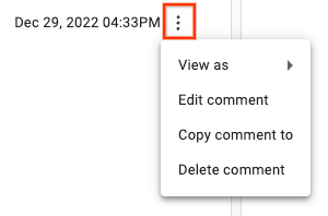 2. Uygun izinlere sahipseniz yorumu düzenlemek veya silmek için yorum zaman damgasının yanındaki "diğer" simgesini de tıklayabilirsiniz.