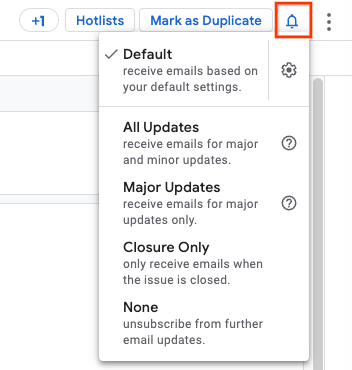 للاطّلاع على المشاكل وتعديلها، يجب تسجيل الدخول إلى حساب Google. يجب أيضًا أن يكون لديك إذن تعديل المشاكل أو مشاكل المشرف للمكوّن الذي يحتوي على المشكلة من أجل تعديل حقوله. إذا كان لديك إذن التعليق على المشاكل، يمكنك عرض المشاكل وإضافة تعليقات إليها فقط.