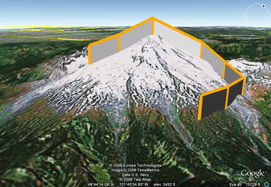 <kml xmlns="http://www.opengis.net/kml/2.2"> <Placemark> <name>relativeToGround Example</name> <LineString> <extrude>1</extrude> <altitudeMode>relativeToGround</altitudeMode> <coordinates> -121.835,48.754,700 -121.828,48.764,700 -121.818,48.776,700 -121.794,48.787,700 -121.778,48.781,700 -121.766,48.771,700 -121.768,48.757,700 -121.773,48.747,700 </coordinates> </LineString> </Placemark> </kml>