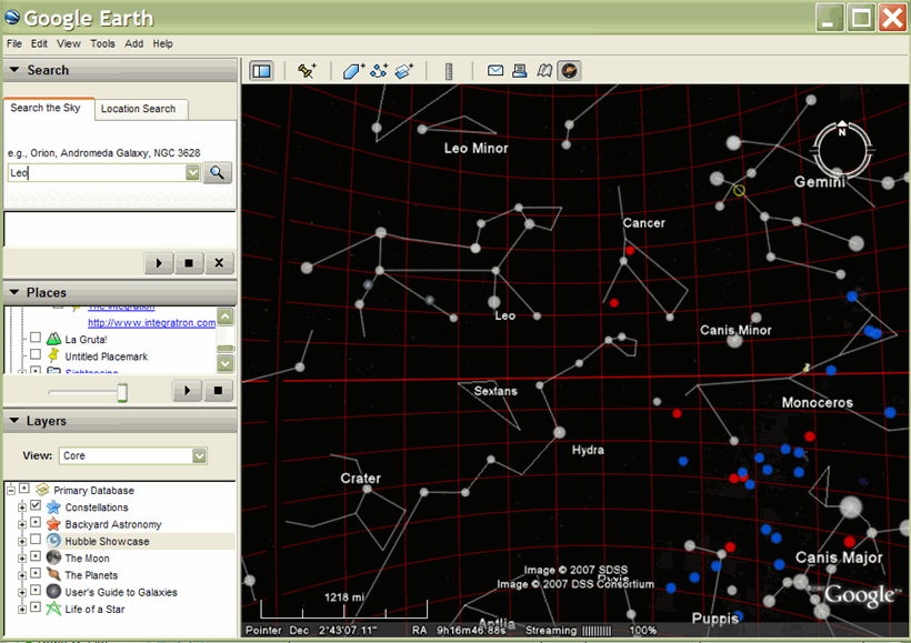 W Google Earth 4.2 i trybie Niebo są obsługiwane następujące elementy: