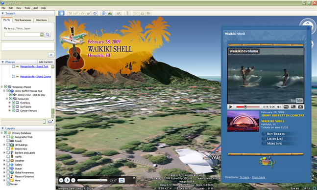 إذا كنت تريد الرجوع إلى ملف موجود في ملف KMZ مختلف (على سبيل المثال، إلى images/jimmyphoto.jpg الموجود في margaritavillealbum.kmz، فستستخدم علامة ".." للانتقال إلى مستوى واحد في بنية الدليل، والذي سيخرجك من ملف KMZ الحالي (buffetthawaiitour.kmz):